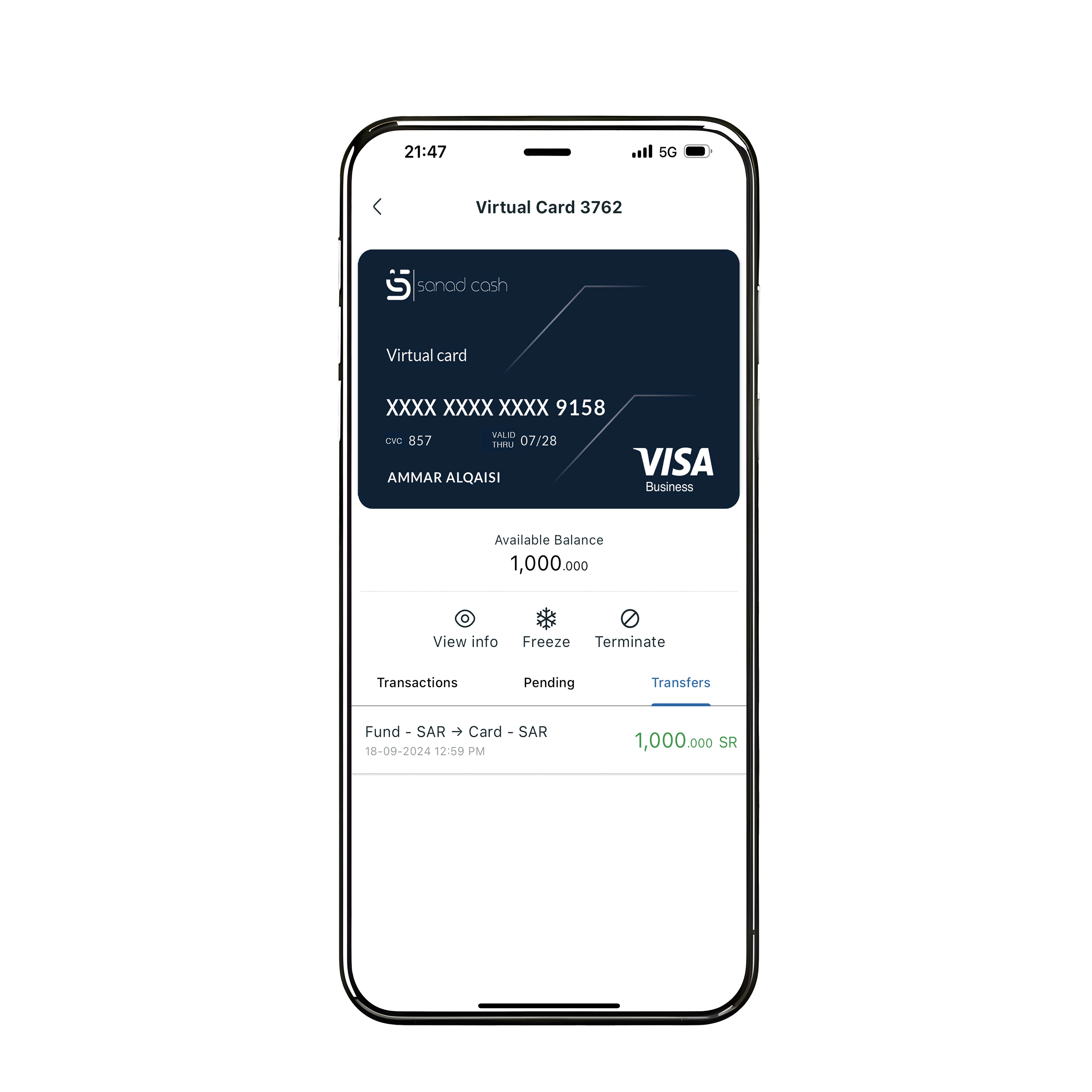Sanad Cash’s user-friendly mobile app allows easy access to your spend and card management on the go. Monitor transactions, approve expenses, and stay in control, all from the convenience of your mobile device.