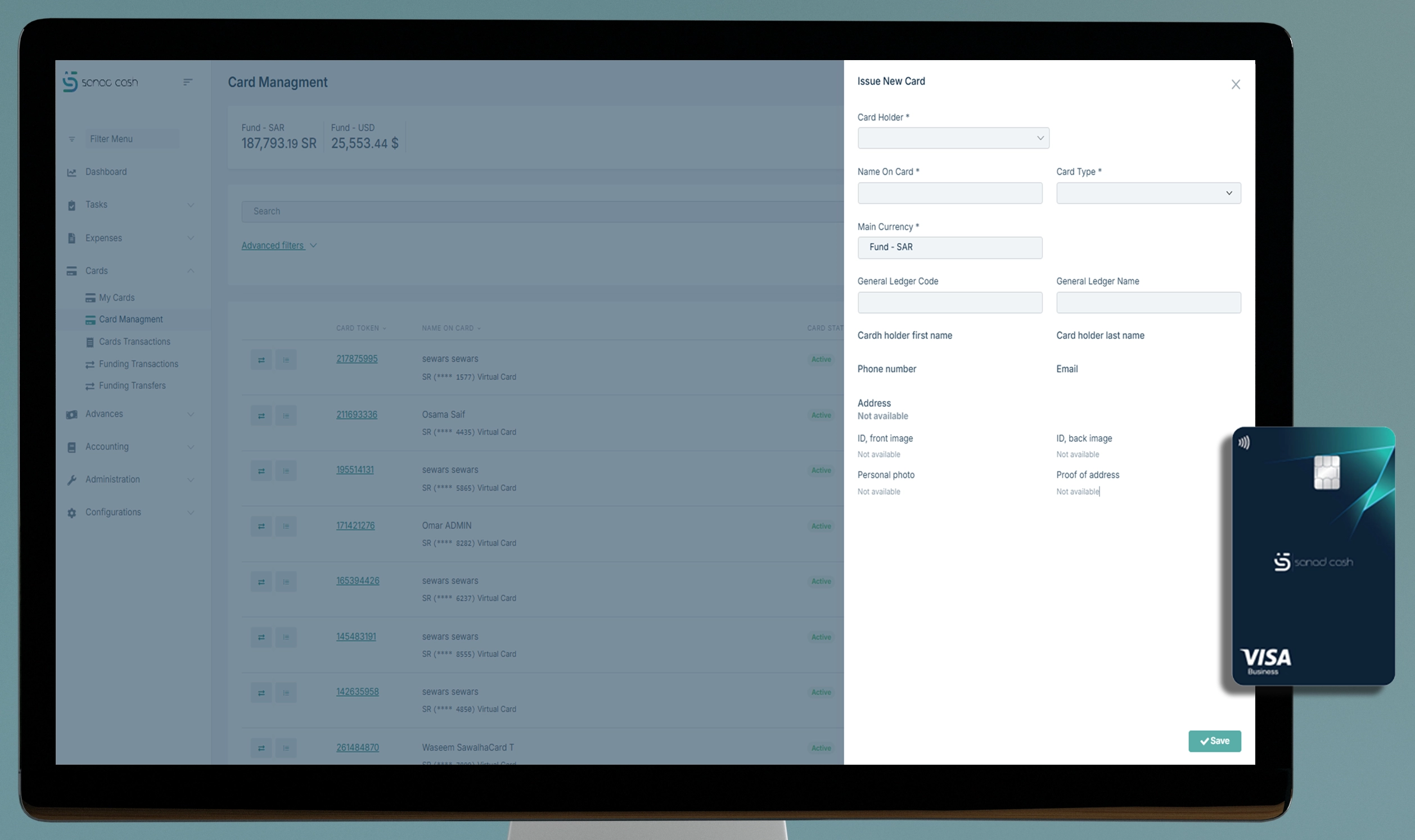 Easily issue, manage, and track corporate prepaid cards for your employees. Sanad Cash gives you complete control over card usage, allowing you to set spending limits, define usage policies, and monitor transactions in real time.
