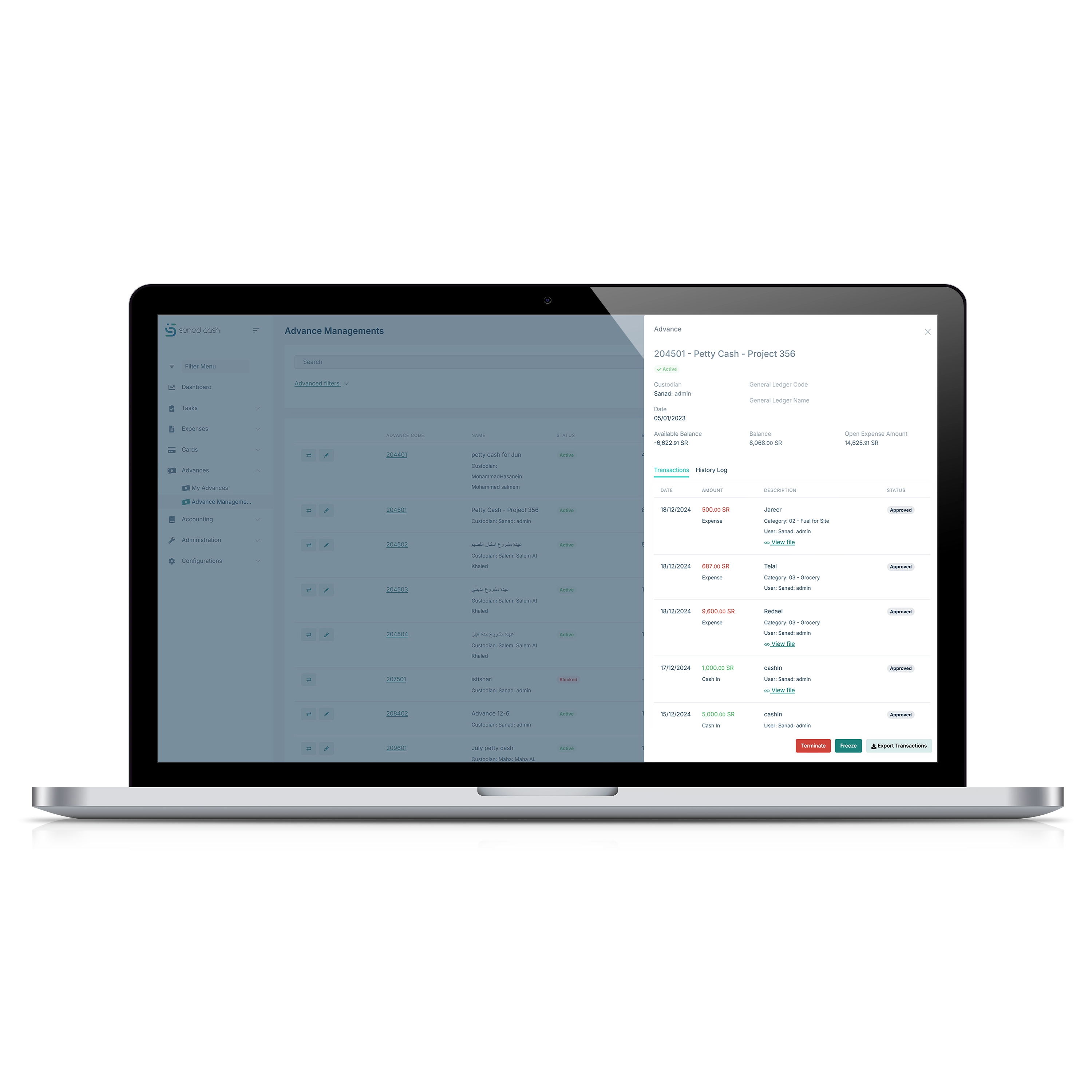 Easily manage and track employee advances, get real time visibility, and ensure compliance. Sanad Cash helps you monitor all cash related expenses, automatically track them for accurate reporting and reconciliation, reducing manual work and ensuring better control.